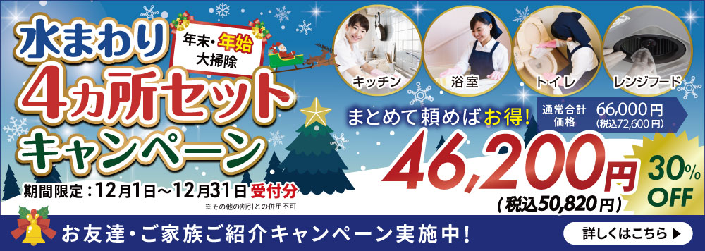 - ※汚れや広さ、タイプなどによって料金が変わる場合もございます。別途お見積もりをご案内いたします。詳しくは訪問アドバイザーまでお問い合わせ下さい。