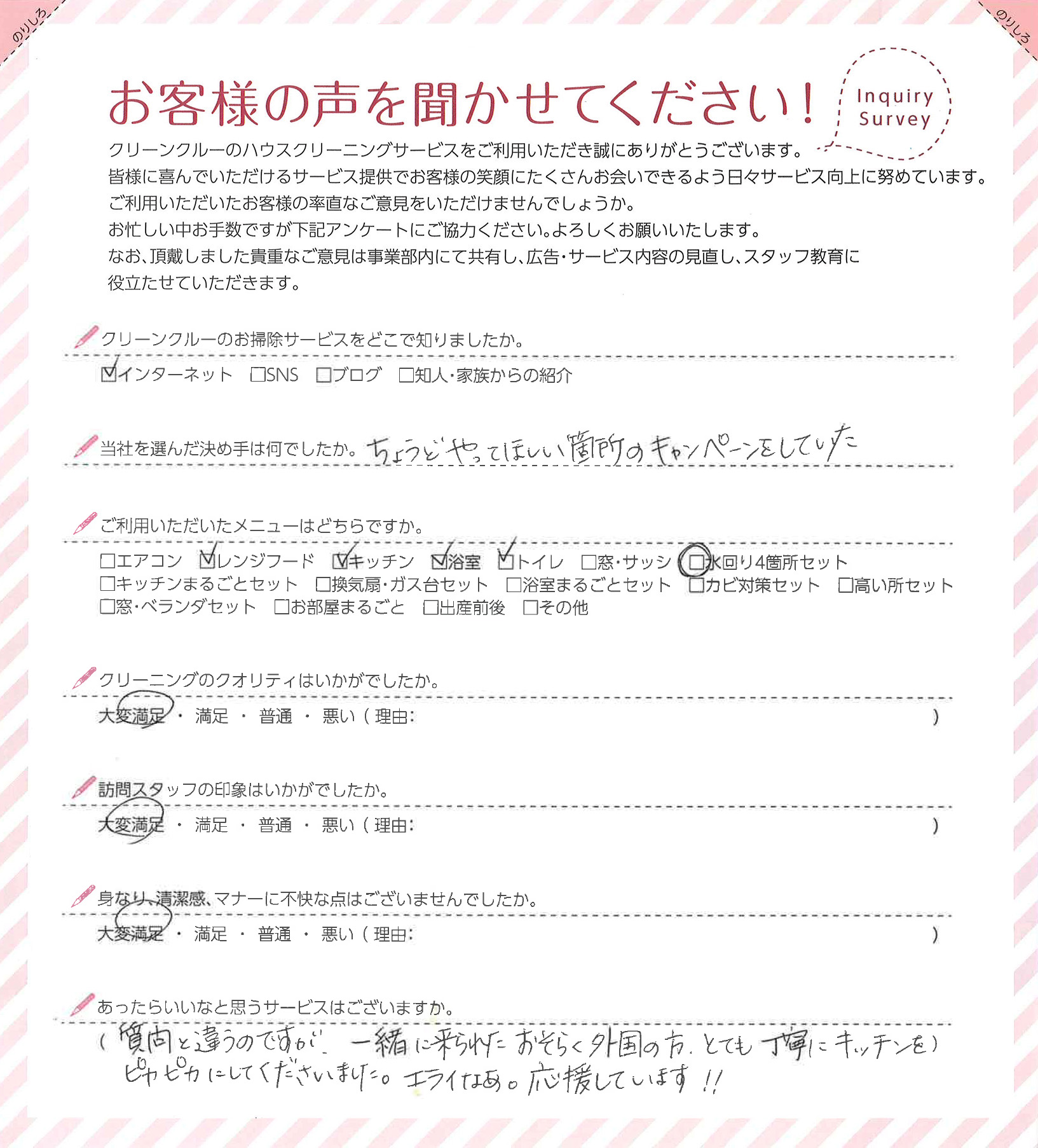毎日お忙しいお客様にお掃除でお力になれるよう、尽力してまいります。よろしくお願いします!